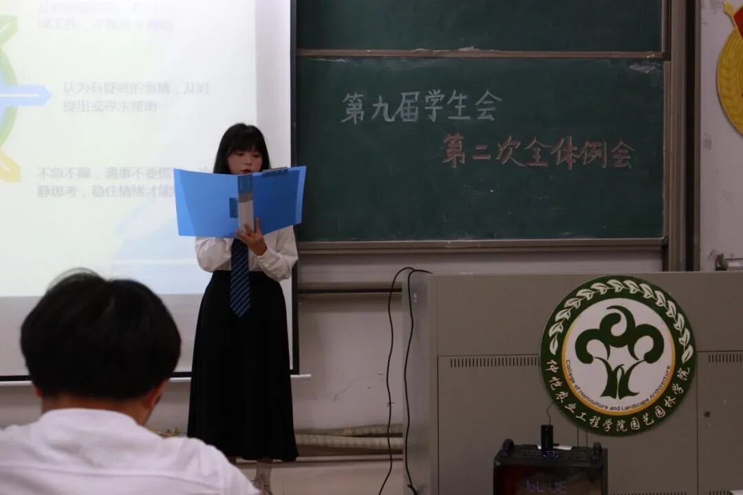 团委学生副书记蔡雪宜对上学期举办的各项活动进行了总结,肯定了同学们在工作中做的好的一面,同时也指出了同学们在工作中存在的不足,并对本学期的工作提出了几点期望,希望同学们在接下来的工作中能不忘初心,保持最初的那一份热爱和热心,从每次工作中总结经验,积极反思,培育创新意识;也希望同学们能够传承团学的责任与使命,让团学更加成熟,更加完善,把团学发展得更好。