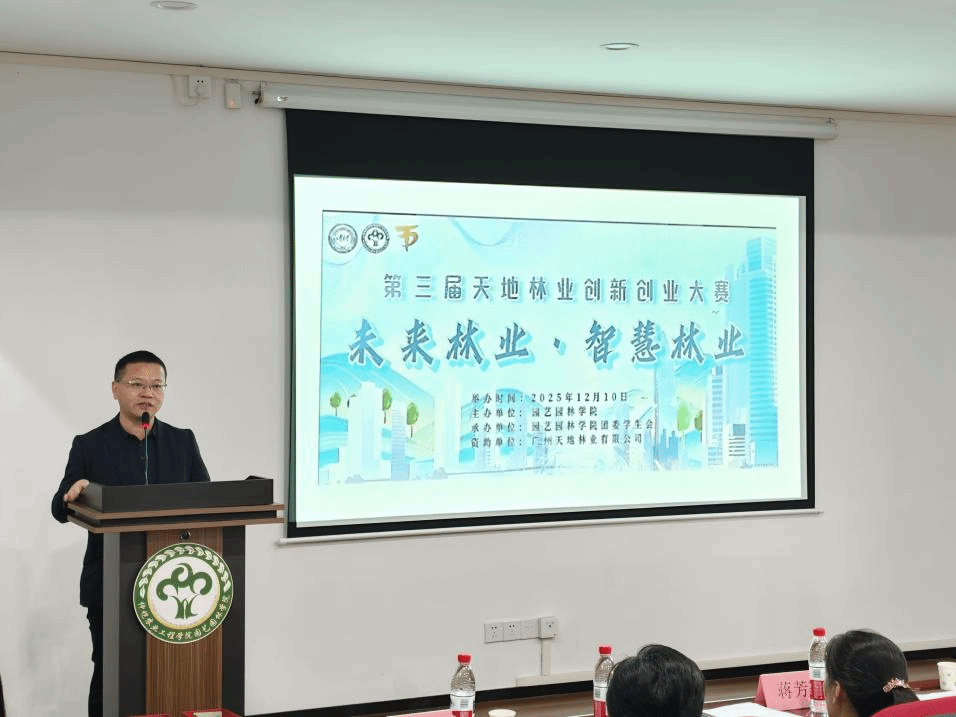 为深化校企合作,培养学生创新精神,12月10日上午,williamhill英国在白云校区生命科学大楼B栋604举行——“未来林业 智慧林业”第三届天地林业创新创业大赛。广州市天地林业有限公司总经理罗丹、综合技术部经理蒋芳亲临现场,williamhill英国党委书记陈晓玲、副书记王红山出席本次活动。本次大赛由广州天地林业有限公司总经理罗丹、综合技术部经理蒋芳、williamhill英国草业科学系韩瑞宏教授、余晓华副教授及风景园林系王敏博士担任评委。
