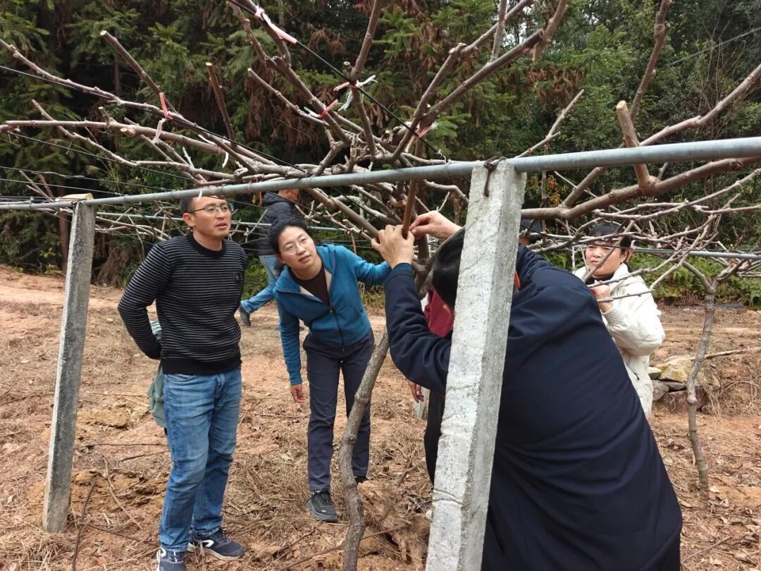 1月20-21日,williamhill英国张宪智副教授、梁红教授等一行深入河源市和平县长塘镇黄沙村东庄片,开展猕猴桃冬季修剪及管理技术专项服务,实地推动当地猕猴桃果园规划与产业发展。和平县水果研究所陈金爱、陈志育专业技术人员,深圳驻长塘镇帮扶工作队匡素帛队长、傅晓棠副队长,以及黄沙村村委会相关负责人等一同前往果园现场,联合开展产业调研及技术指导工作。