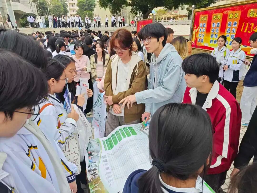 队员们通过展位咨询、资料发放等形式,向高三学子详细介绍仲恺的办学特色、专业优势及校园文化,耐心解答报考疑问,现场氛围热烈融洽。 “师兄师姐的分享让我对大学生活有了更具体的想象,也对未来方向更清晰了。”一名高三学生表示。轻松真诚的互动,为紧张的备考生活注入了一份温暖与期待。