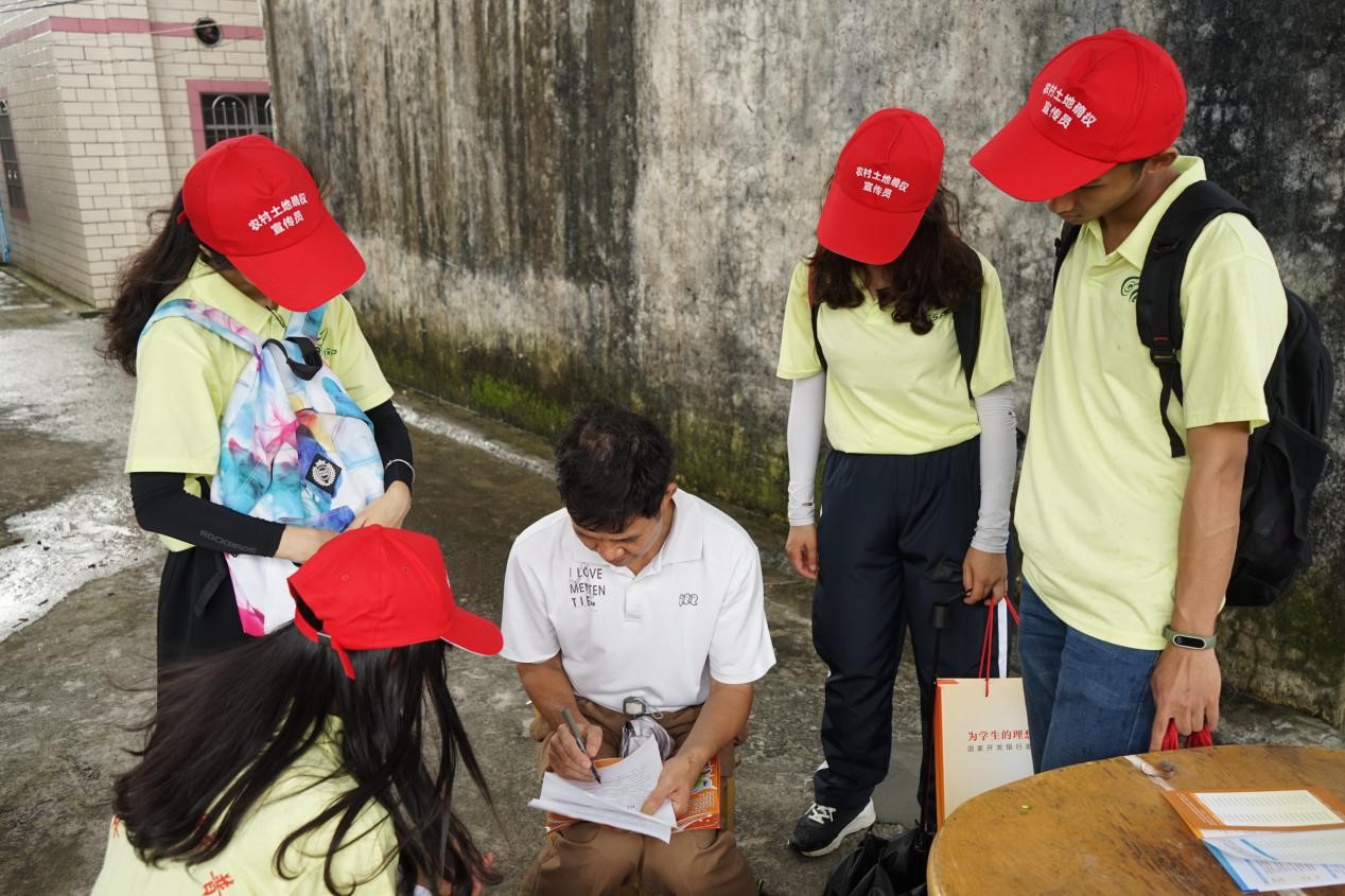 政策宣传组两天的摆摊宣传都取得了很大成效,许多居民都表示对土地确权有了一个基本的了解。今天,他们依然满怀着热情,深入到罗坑村每家每户普及土地确权还有国家助学贷款等政策。他们在附近张贴关于土地确权的海报,还给村民们派发问卷,调查当地对助学贷款的了解情况。尽管天气恶劣,但是政策宣传组的工作热情有增无减,他们希望通过宣传,让群众深知助学贷款优惠政策,使当地贫困家庭的孩子能圆大学梦。村民们坦言,罗坑村许多家庭都需要助学贷款,感激政策宣传组的耐心普及。
