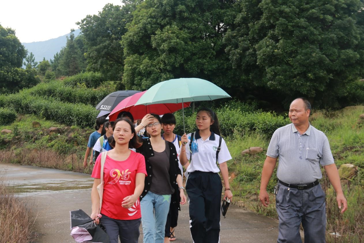 7月9日,两院的专业调研组在带队老师余倩花和曾皓玲的带领下,一同前往罗坑村村委会了解具体情况,罗坑村是罗坑镇的省定贫困村之一。队员们就罗坑村的民居基本情况、基础设施建设、产业经济现状和旅游发展前景等方面向刘桥生书记进行了咨询。刘书记一一为队员们作详细的解答,使队员们对罗坑村的情况有了更深刻的了解。随后,刘书记带领队员们一同前往罗坑茶园进行走访参观。一路上,刘书记向老师和队员们介绍了罗坑村的范围和村落的布置,让队员们对罗坑村的地理位置和分布有更为立体的了解。到达茶园以后,刘书记向我们讲了茶园产业的现状以及村民对茶产业的态度。走访过程中,大家欢声笑语,在深入了解罗坑村的同时感受着罗坑村美丽的自然风景,在雨后彩虹的映照下度过了一个美好的下午。