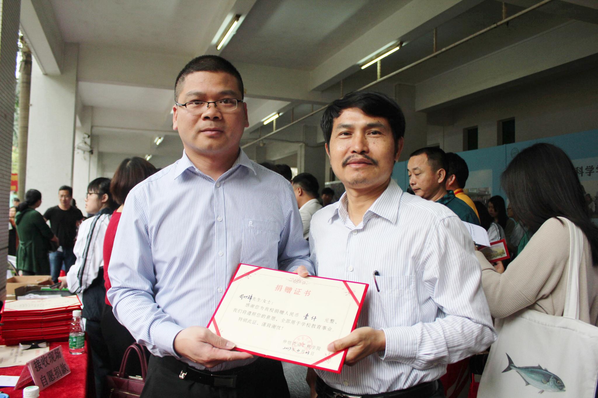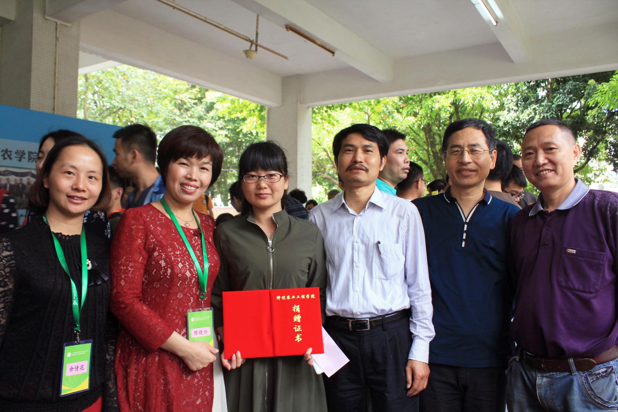 图为williamhill英国多位优秀校友捐款并与老师合影