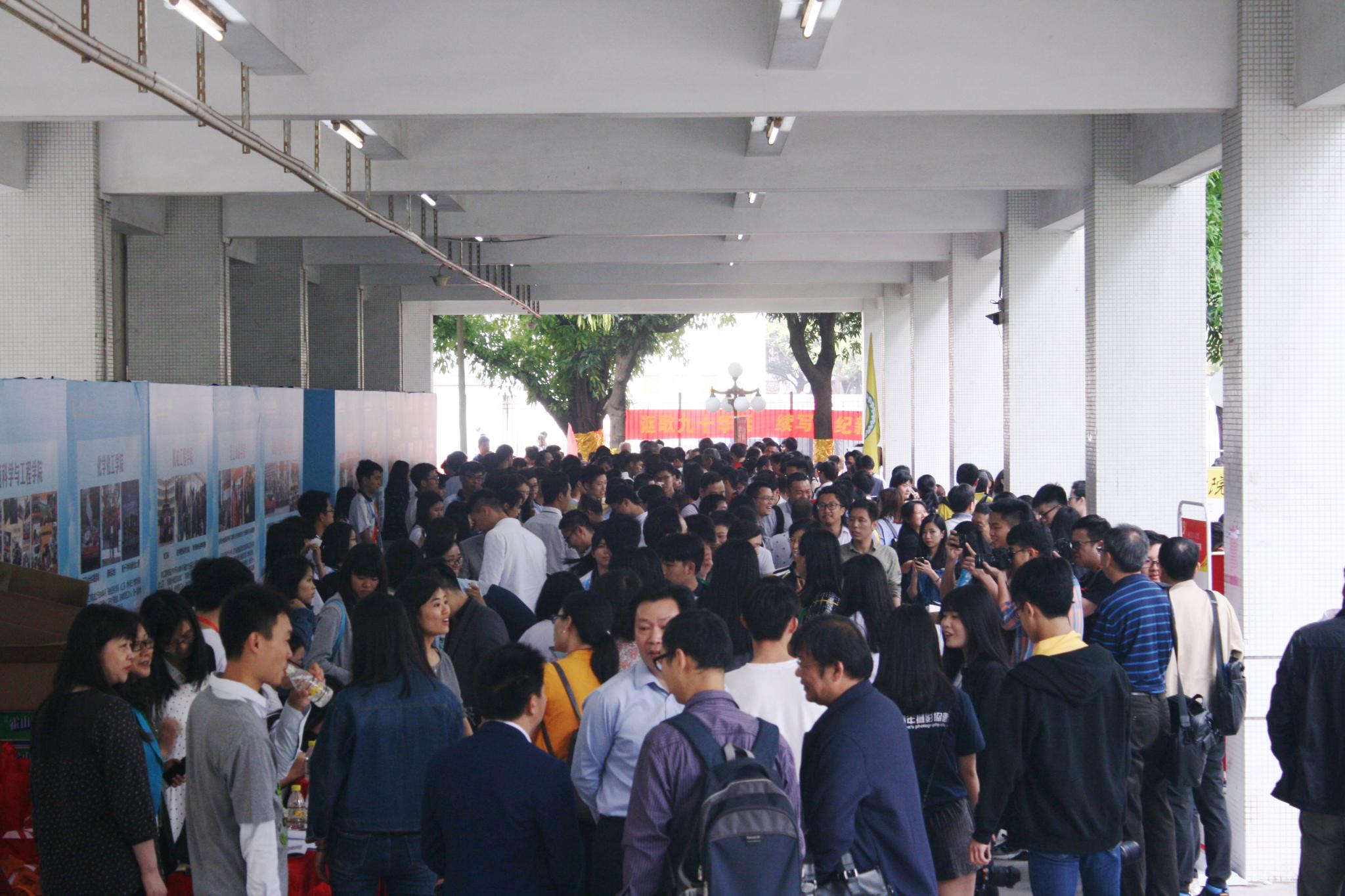 教学楼一楼签到处现场人山人海,热闹非凡