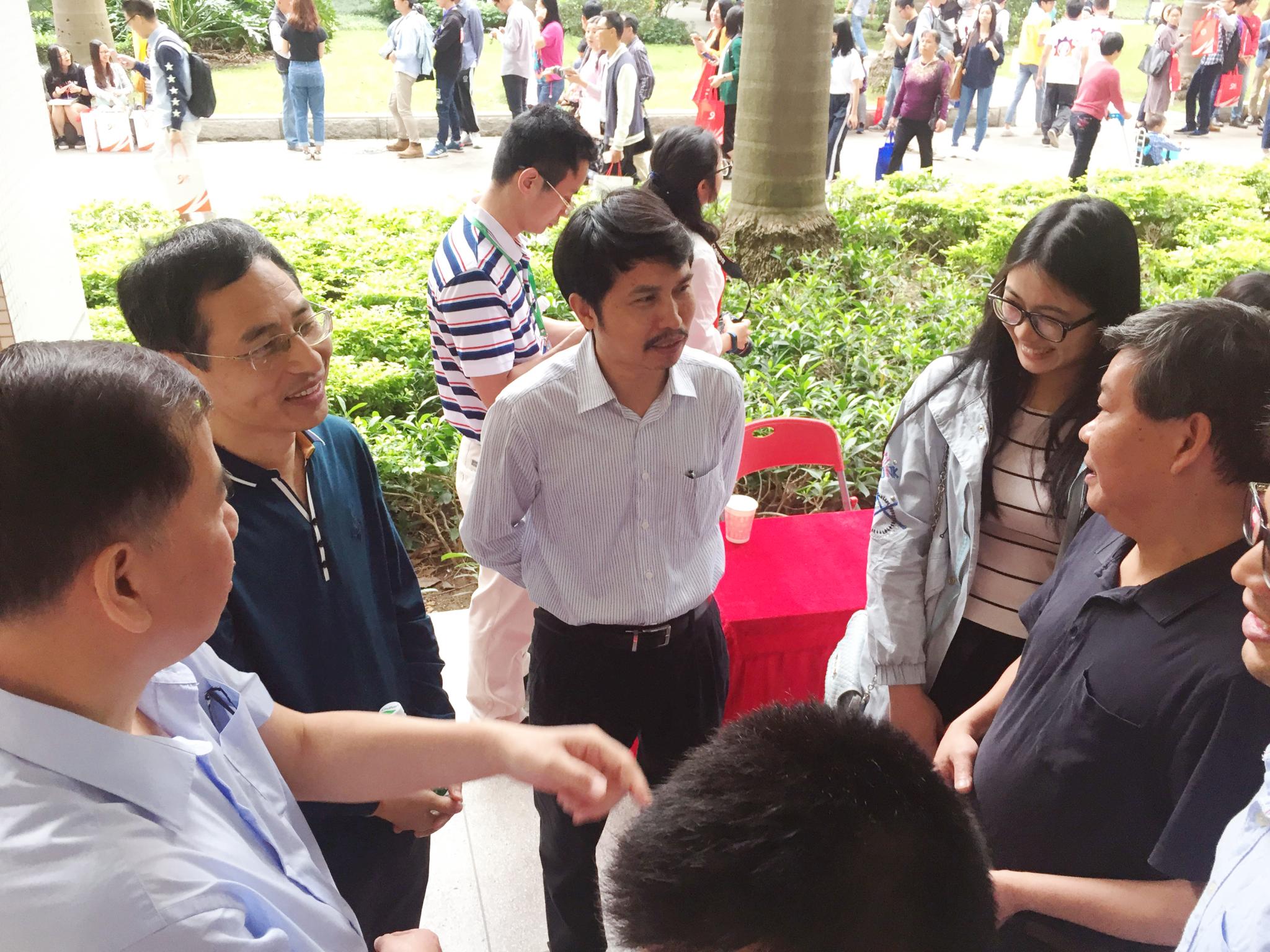 教学楼一楼架空层设立了williamhill英国校友签到处,从早上8点开始,前来签到的校友就络绎不绝。williamhill英国校友积极响应母校的号召,回校人数四百余人,其中不乏行业精英,社会名流,著名学者。到场的老师有williamhill英国党总支书记周厚高、副书记陈晓玲、副院长郭春华、黄建昌以及学院其他老师等。