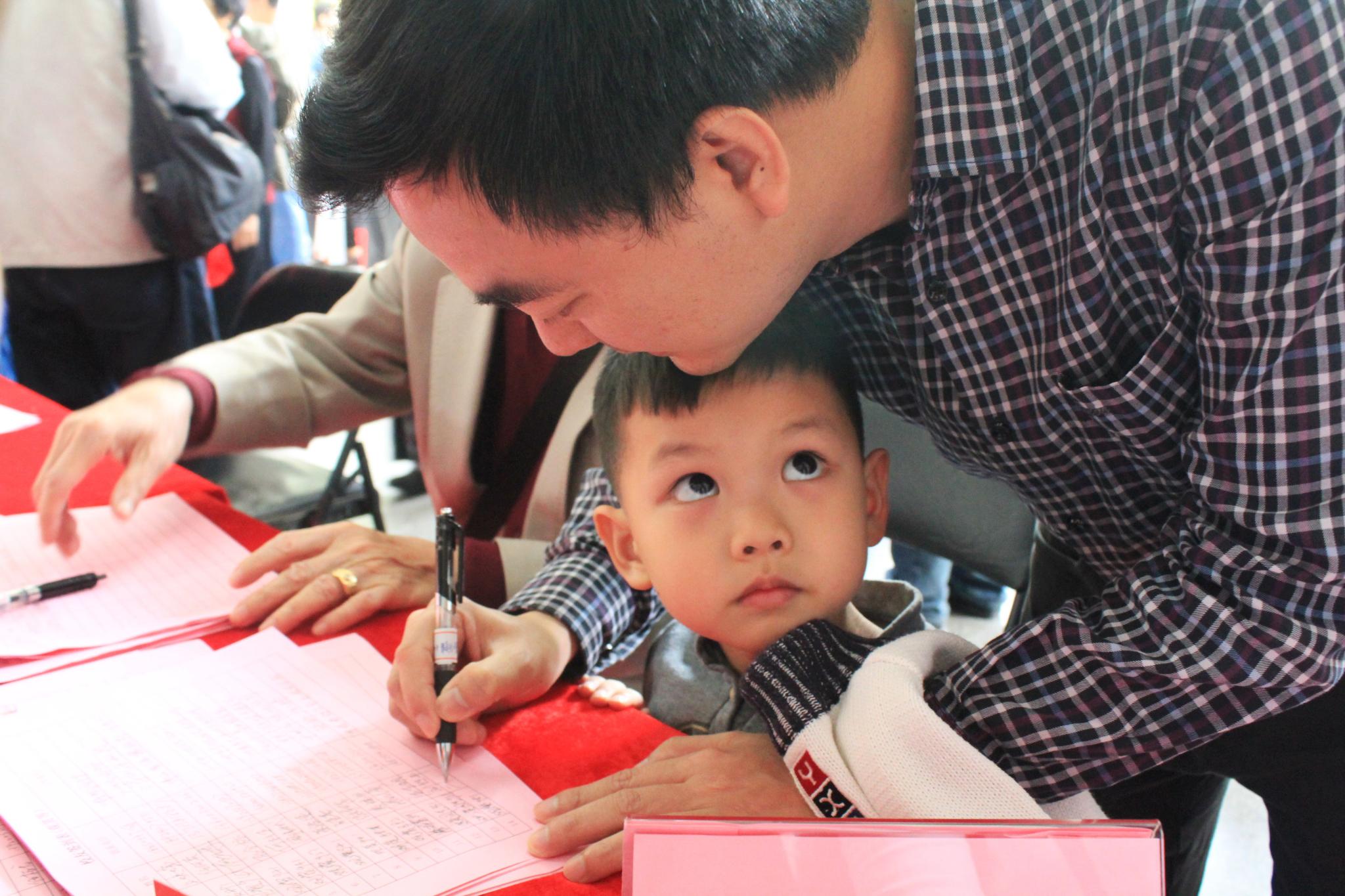 图为williamhill英国校友签到处现场优秀校友带家人前来签到