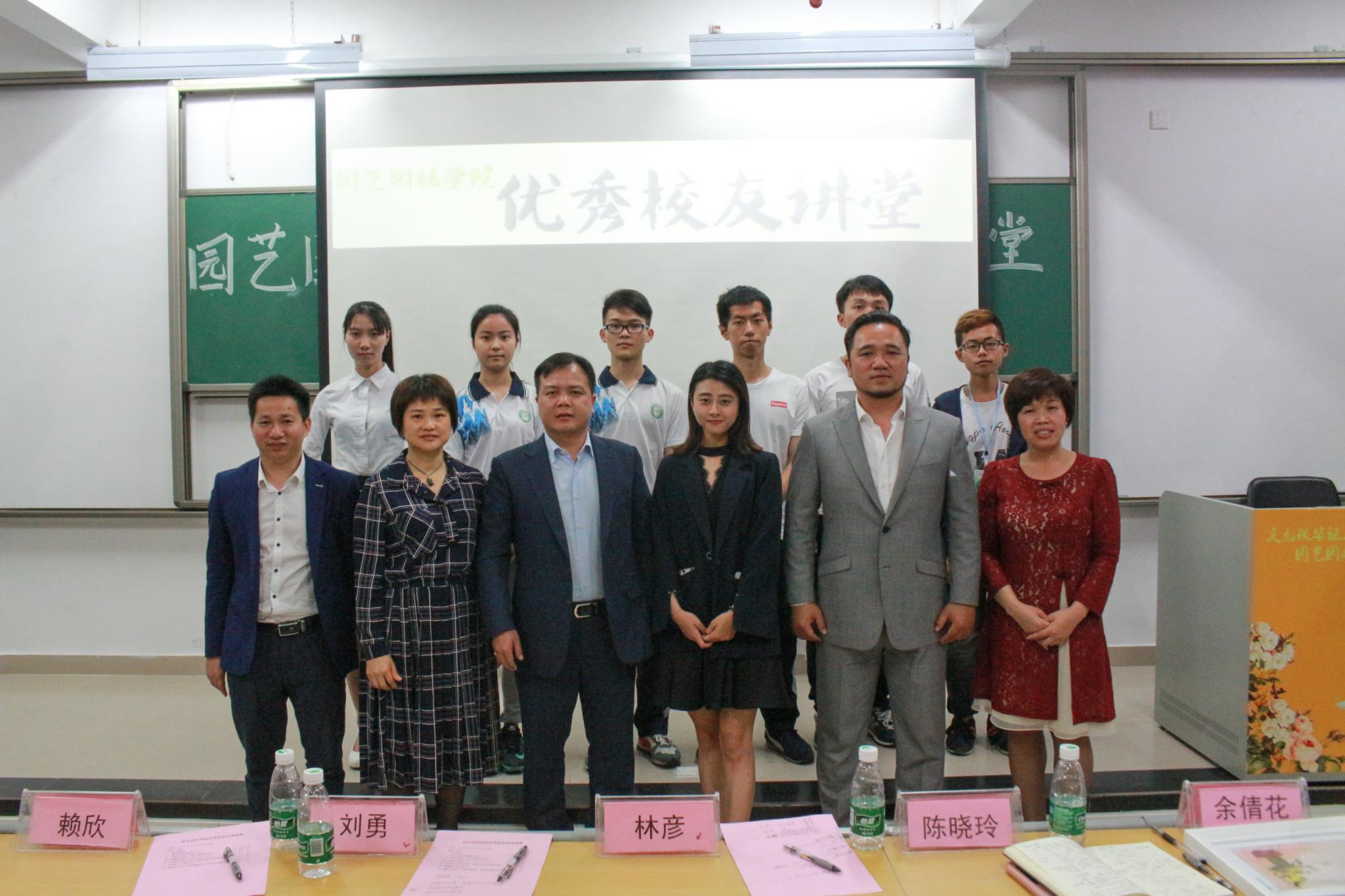 4月23日下午,在母校90周年庆典隆重召开之际,williamhill英国在白云校区举行优秀校友讲堂活动,拟发挥优秀校友的积极影响,为在校学子带来成长的力量和精神的动力。出席本次活动的校友嘉宾有赖欣(果树93届,佛山市东平科达五金机械有限公司财务部经理)、林彦(观赏园艺97届,棕榈生态城镇发展股份有限公司副董事长)和刘勇(观赏园艺99届,岭南园林股份有限公司副总裁)。williamhill英国党总支副书记陈晓玲、辅导员刘义存以及williamhill英国学生代表参加。