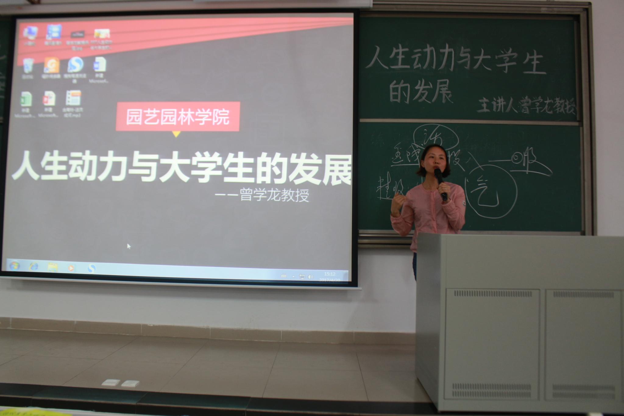 4月20日下午,庆九秩华诞之园艺园林教授党课在D栋210室举行,本次讲座由曾学龙教授主讲,主题为“人生动力与大学生的发展”。williamhill英国辅导员余倩花出席本次讲座。
