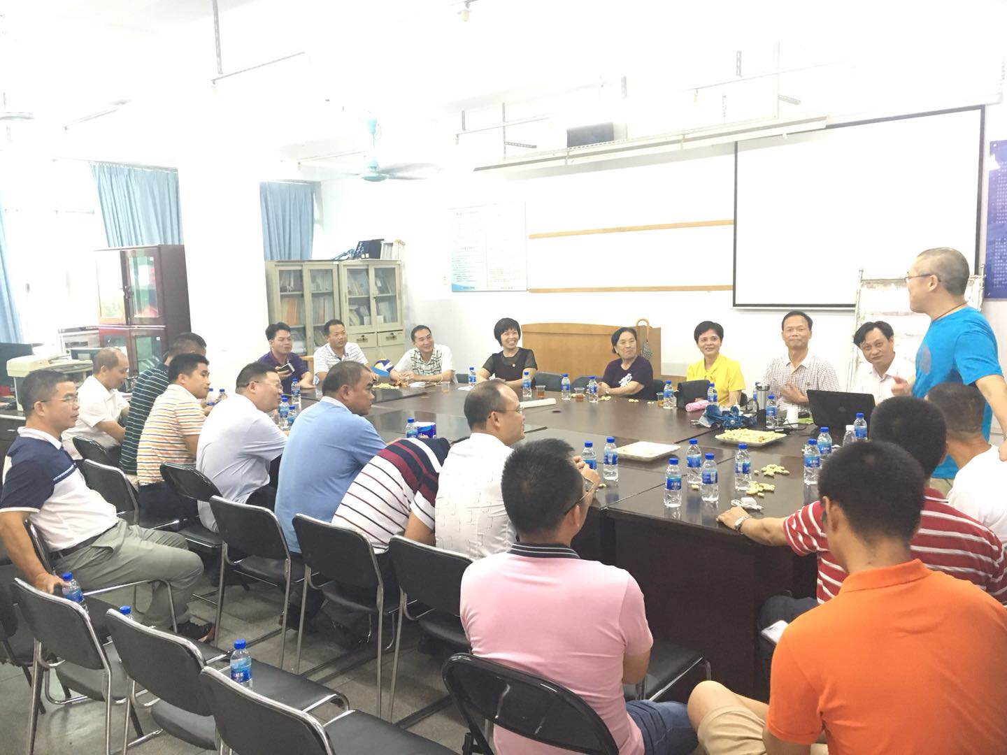 7月13日下午,果树98届(果树941班)28位校友相聚母校,在海珠校区教学楼606室举行毕业20周年庆祝活动。园艺园林学院党总支书记陈晓玲、副院长黄建昌以及退休教师王心燕老师、郑慧明老师与班主任张洁萍老师参加了座谈会。