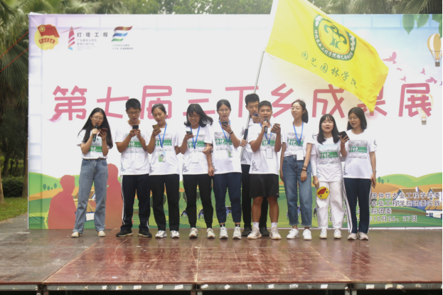 开幕式表演中,实践部为大家带来了非常贴近生活的小品节目《光荣之家》,它讲述了三个大学生参加“三下乡”后,与亲人一同观看姐姐参加国庆阅兵的温馨故事。小品展现了“三下乡”的工作内容,包括宣传垃圾分类、义教文娱、调查与科普等。小品《光荣之家》优异地展示了下乡成果,充分展现我国今昔巨大之变化以及今日国力之强盛。随后,工作人员举着艺林学院的院旗进行了环校跑。大家载着欢声笑语,载着爱农爱乡的热情,把勇担新时代大任的热血洒满了我们的仲园。