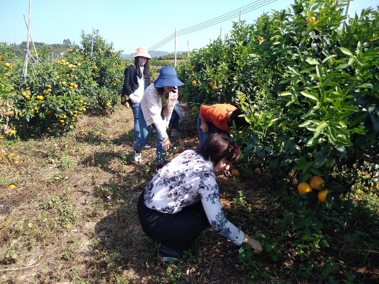 教职工党员们积极地通过专业知识对玫瑰柑园的种植和发展进行了详细的专业指导,柑园的工作人员表示认可与感谢,并希望日后能够合作共赢。志愿服务中,教师党员们充分发扬了不怕脏、不怕累的精神,有的用铲草工具将枯枝烂叶进行清理,有的用手将杂草连根拔起,他们不顾手上沾满泥土,干的非常认真,有条不紊地进行着,在铲草修剪玫瑰柑树的过程中,体现了教职工党员们团结协作的精神。经过大家的辛勤劳动,玫瑰柑园的杂草、残枝败叶基本被清除,进一步改善了玫瑰柑园的环境。