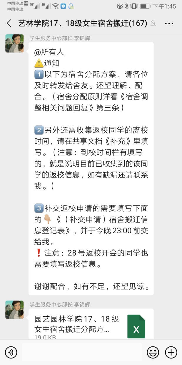 学院党总支高度重视学生宿舍腾挪工作,6月14日召开第一次线上腾讯会议,细心地听取学生意见,耐心地解答学生疑问,并迅速联系搬迁公司,签订搬迁合同,由两辆货车以及10位搬家师傅帮忙搬运。6月16日,学院拟定搬迁宿舍方案,由学院党总支副书记石利刚担任搬迁工作领导小组组长,进行全面指挥。6月22日召开第二次腾讯会议,详细讲解学院搬迁流程,并强调注意事项,再次解答学生疑问。6月28日,学生党员自愿返校,争做宿舍搬迁志愿者,组建学院搬迁党员先锋队。7月1日,学院召开志愿者小分队工作安排会议,讲述工作分工,并强调安全问题,晚上辅导员老师走访学生宿舍,了解学生打包行李的情况,叮嘱同学们做好个人防护,备齐应急物资,以便应对突发状况。学院党总支秉持着“为了学生的一切,一切为了学生”的思想,使同学们得到了便利的搬迁条件与贴心的搬迁保障。