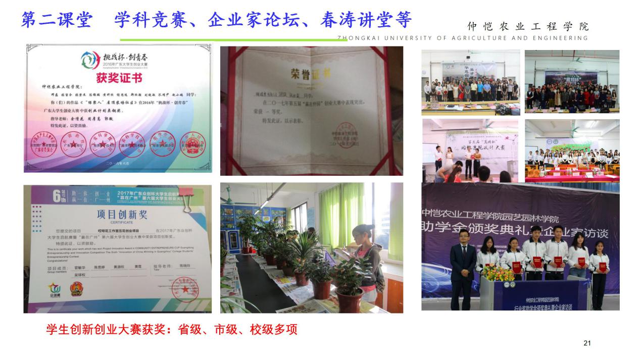 学院与新西兰梅西大学联合开办园艺专业(国际班)3+2本硕连读班,培养国际视野人才,先后分别与中科院华南植物园、中国热带农业科学院南亚热带作物研究所、广东省农业厅、广东省农业科学院、广东省林业科学研究院等多家单位联合培养研究生。普邦园林股份有限公司、万顷洋农业发展公司、华苑园林股份有限公司、茏腾园林景观设计有限公司等多家知名企业在我校捐资助学,设立园艺园林行业奖学金、奖教金。五年来,企业资助金额高达110万元,激励和培养了一批批优秀的专业人才。