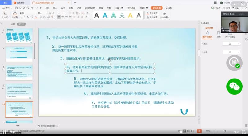 7月26日下午,williamhill英国(以下简称“我院”)在腾讯会议线上召开2020级新生助班培训会。本次培训会由辅导员李剑峰主讲,团委第二副书记黄梓潆主持,我院全体2020级新生助班参与培训会。