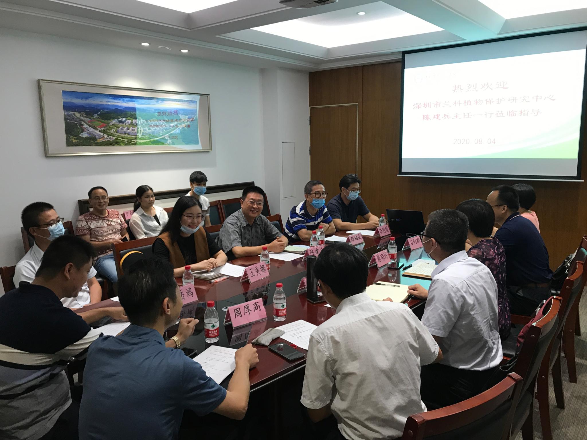 8月4日上午,深圳市兰科植物保护研究中心主任陈建兵、兰科中心首席研究员邢福武等一行五人到我校园艺园林学院调研交流。williamhill英国党总支书记陈晓玲、副院长陈平、副书记石利刚,花卉中心负责人周厚高教授及部分学院老师参加交流会。会议由陈平副院长主持。