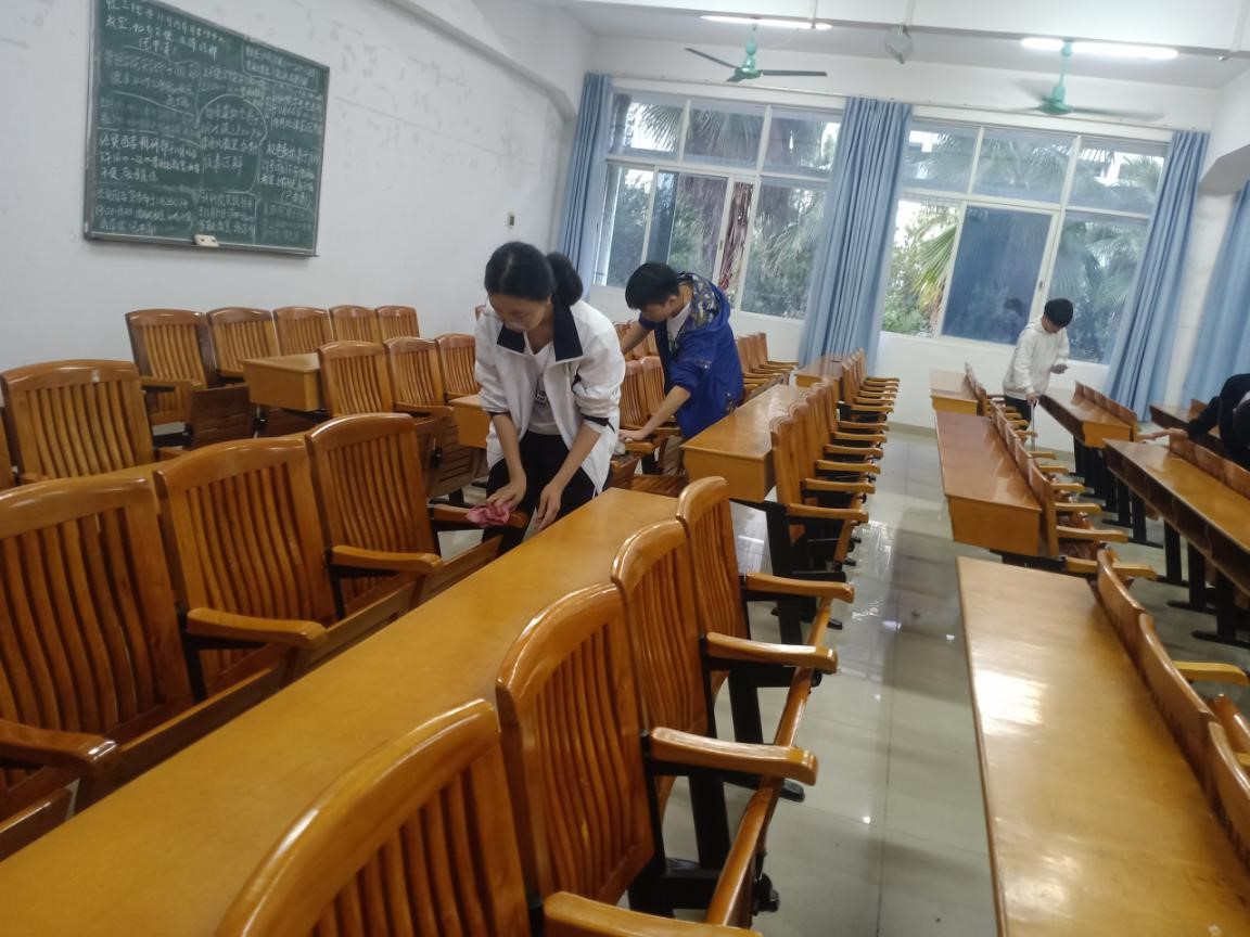 在活动中,入党积极分子们自带清洁工具准时到达自己要打扫的课室。他们分工合作、互相配合,有的清扫地面,有的收拾讲台、擦黑板,有的清理抽屉里遗留的垃圾,有的擦课桌、椅子……学生们热情高涨,以劳动为荣,充分展现了园艺学生党支部入党积极分子不怕脏、不怕苦、不怕累的服务精神,把“全心全意为人民服务”的根本宗旨落实到实际行动中,以优秀党员为榜样,向优秀党员学习,时刻发挥先锋模范带头作用。在大家齐心协力的合作下,终于将教室打扫的干干净净,得到了同学们的夸赞。