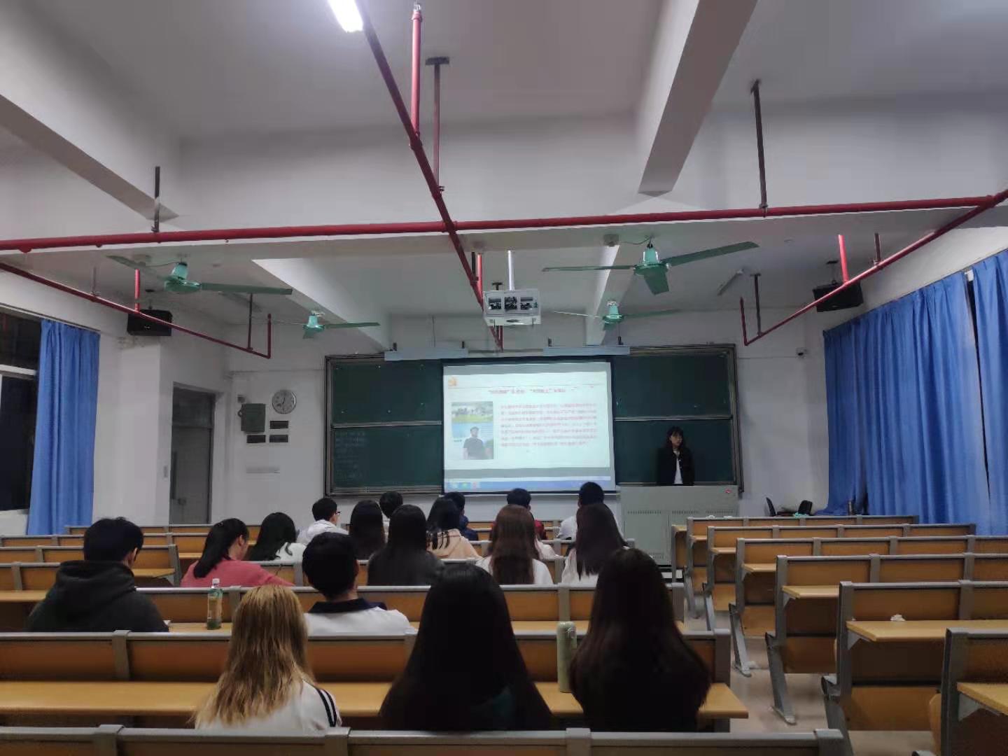 宣讲会伊始,宣讲人陈瑛师姐带领同学们回顾了党的十九届四中全会以来的工作成果,其中包括疫情期间党中央带领人民战胜各种风险挑战,决胜全面建成小康社会取得决定性成就等,并介绍了为农民服务的农民院士朱有勇、疫情中的逆行者钟南山院士等值得同学学习的人民榜样的光荣事迹。