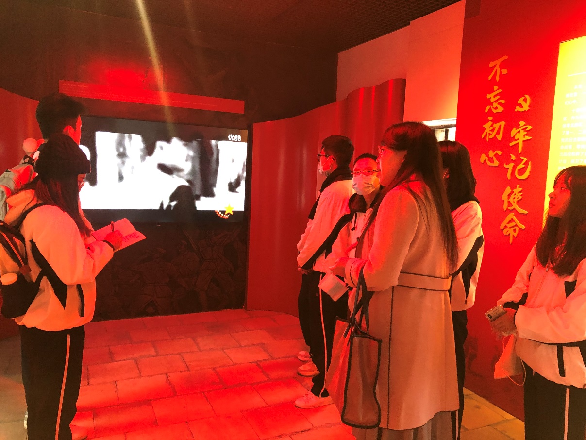 在纪念馆门前,参与此次学习活动的全体成员面对“不忘初心·牢记使命”的标语和党旗,全体庄严宣读入党誓词,坚定理想信念,提醒自身要不忘入党初心,保持奋斗精神和革命精神,为党为人民做贡献。