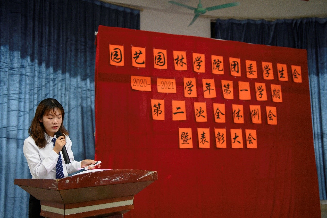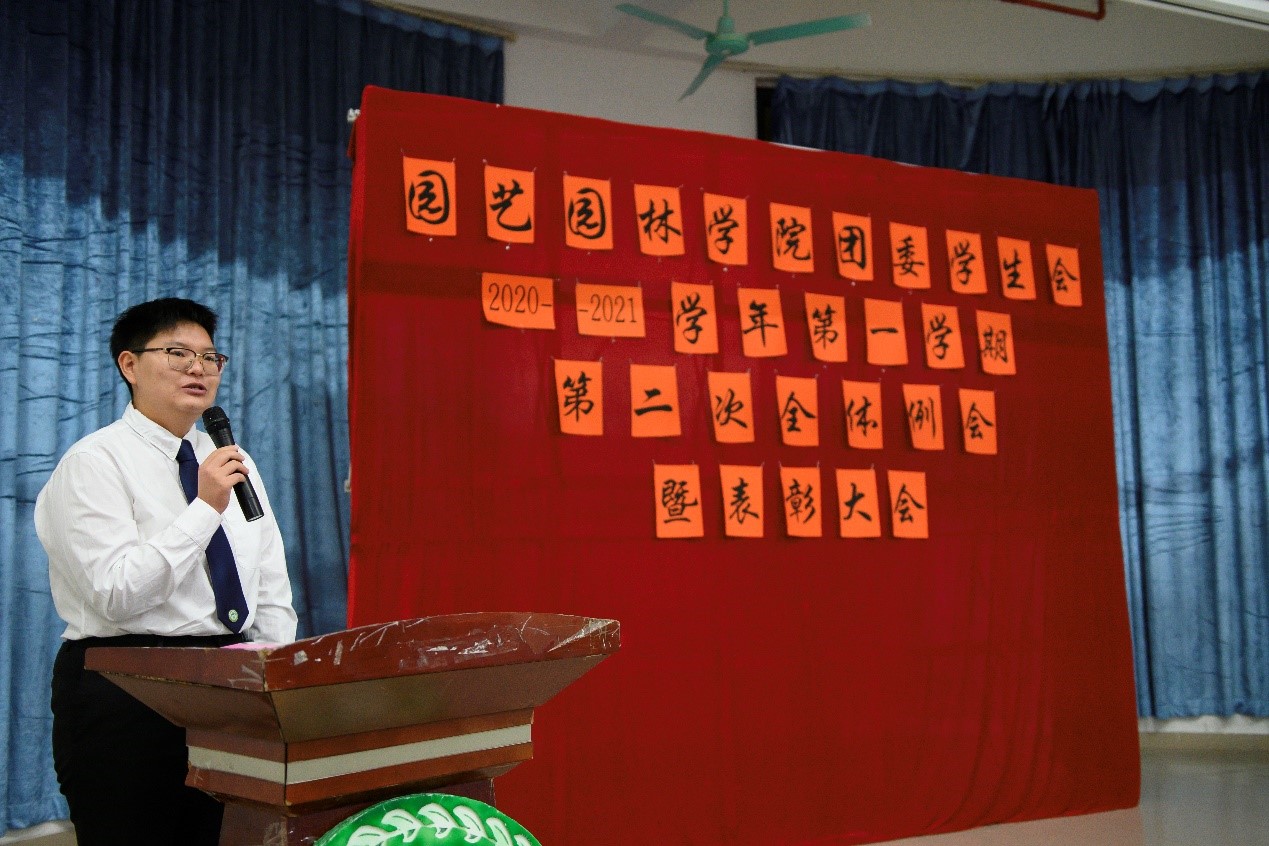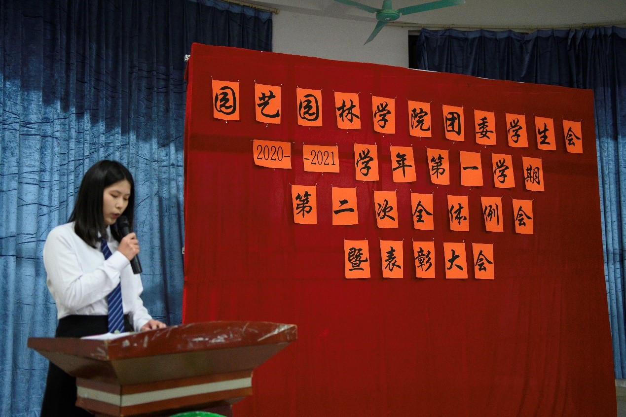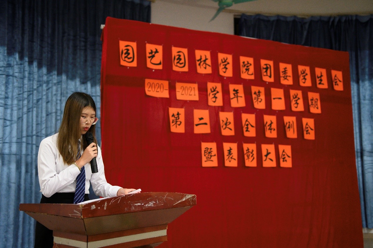 大会伊始,李剑峰老师和聂恺阳老师分别为本学期院运会、校运会获奖同学颁发证书,以表彰他们获得优秀成绩。颁奖过后,团委学生会学术部、外联部、宣传部、实践部、竞赛部、办公室部长依次上台进行工作汇报。部长们总结和反思了一学期的工作成果和不足,并提出对部门内部、部门之间增加默契、相互理解、携手共进的希望。