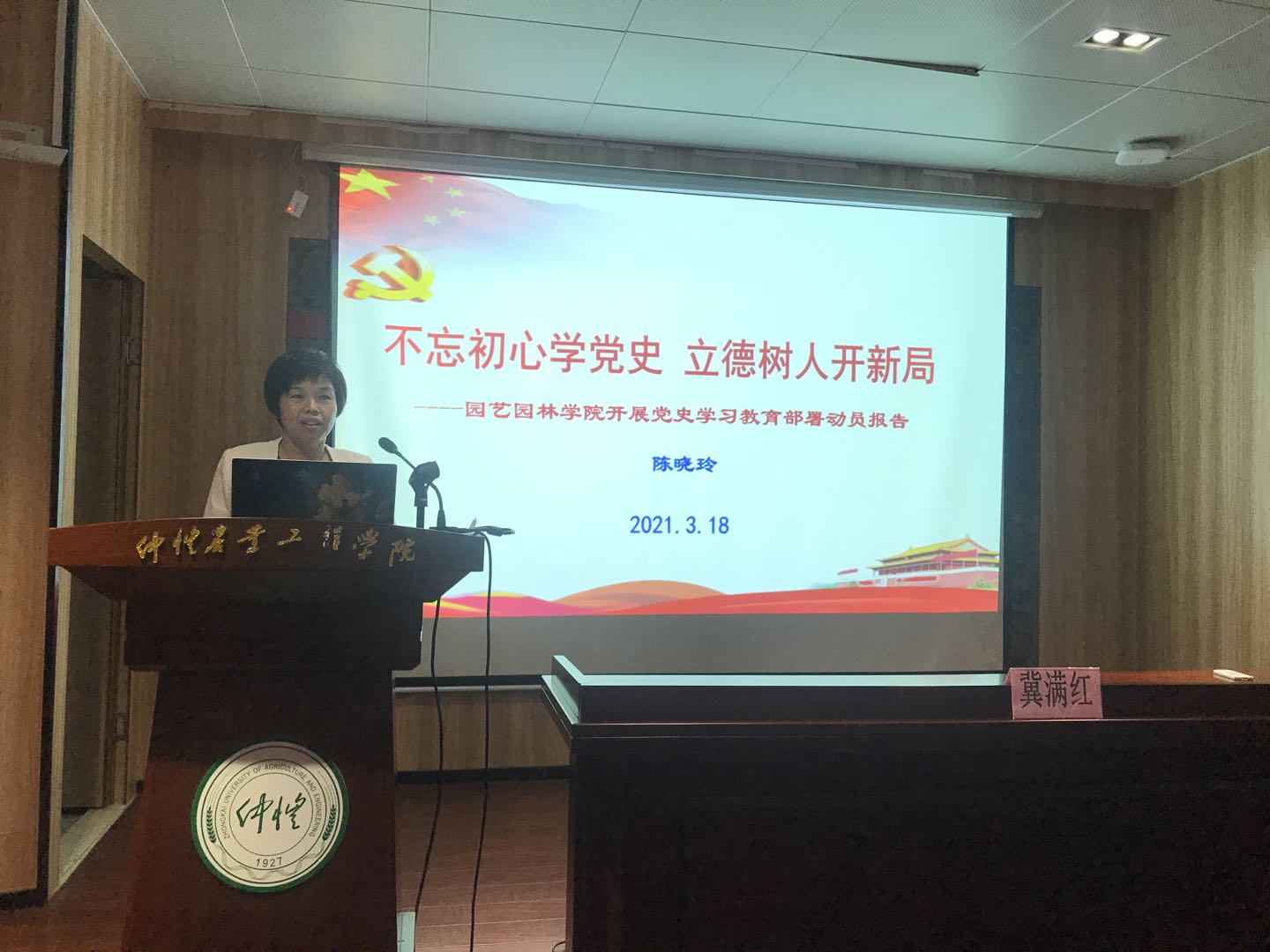 会议上,学院党总支书记陈晓玲以《不忘初心学党史 立德树人开新局》为题,紧紧围绕习近平总书记在党史学习教育动员大会上重要讲话精神,从“为何学、学什么、怎么学、怎么做”等四个方面详细而生动地给与会党员们做了动员部署,强调全体党员要深刻理解党史学习教育的重要意义、准确把握党史学习教育的核心要义,结合学院实际、专业学科特色和十四五规划目标,坚持“红色育苗工程”“三会一课”等常态化学习,严格落实各项学习工作安排,解决师生“急难愁盼”问题,在新征程上创造新辉煌,以优异成绩庆祝中国共产党成立100周年华诞。