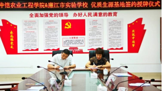 廉江市实验学校成立于2014年,是一所集小学、初中、高中于一体的十二年一贯制非营利性现代化学校,是广东省一级学校,近年来为仲恺输送了近百名优秀生源。本次签约挂牌将有助于两校进一步的合作,为学校提供稳定的优质生源贡献力量。