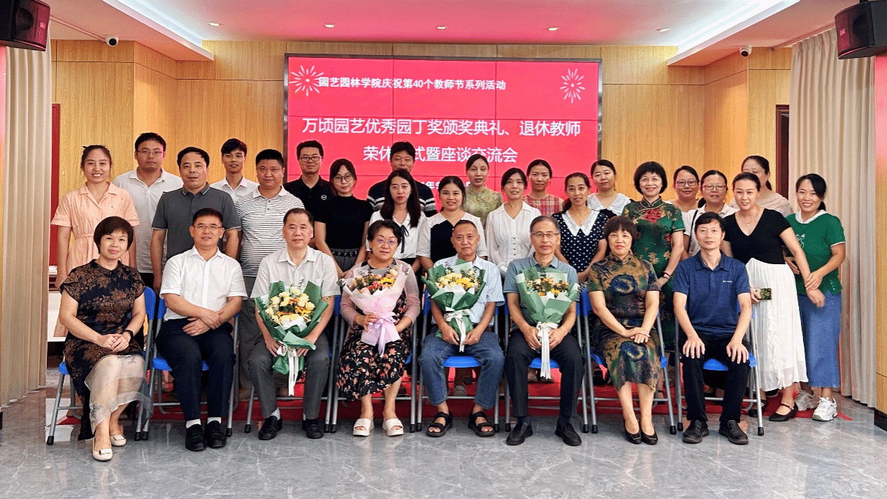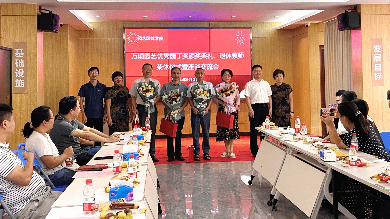 为庆祝我国第40个教师节,弘扬高尚师德师风,9月20日下午williamhill英国在海珠孵化园举办万顷园艺优秀园丁奖颁奖典礼、退休教师荣休仪式暨座谈交流会,学校人力资源部部长尹国强、校工会常务副主席吴雪君、学院党政班子、2024年退休教师以及中青年教师近40人参加活动。本次活动由学院党委书记陈晓玲主持。