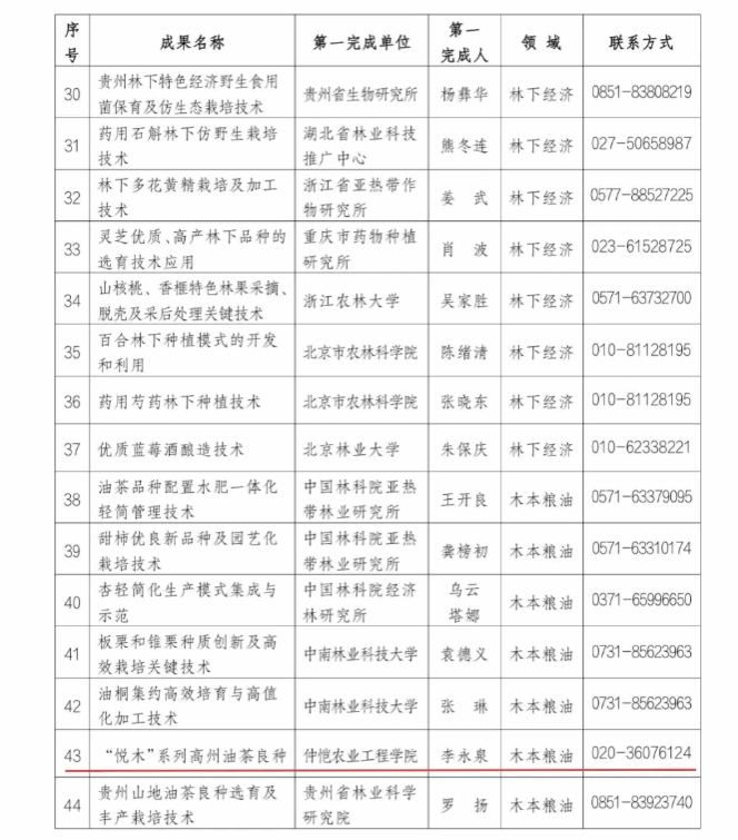 近日,国家林业和草业局公布集体林权制度改革重点推 广科技成果,williamhill英国李永泉教授团队培育的“悦木”系列高州油茶良种成功入选。