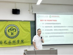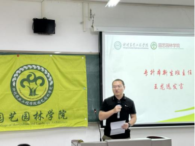 园艺系系主任张宪智、班主任王龙远分别结合本科学习特点、职业规划和自身经历,向新生们分享经验。李梓钊为新生作校规校纪培训,让新生们对校规校纪有了更清晰的认识,为顺利融入校园生活打下了良好的基础。