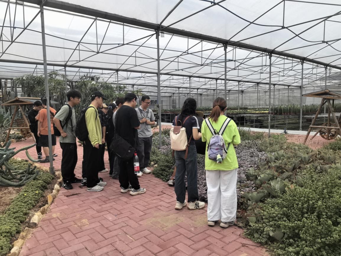在专业人员带领下,研究生们深入了解多肉植物从种苗繁育的精细环节,到标准化栽培过程中的科学管控,再到成品养护的悉心照料。整个流程展现出正欣园艺公司的专业性,也让研究生们对多肉植物产业有了更直观、更深刻的认识,为未来林学研究拓展了新思路。