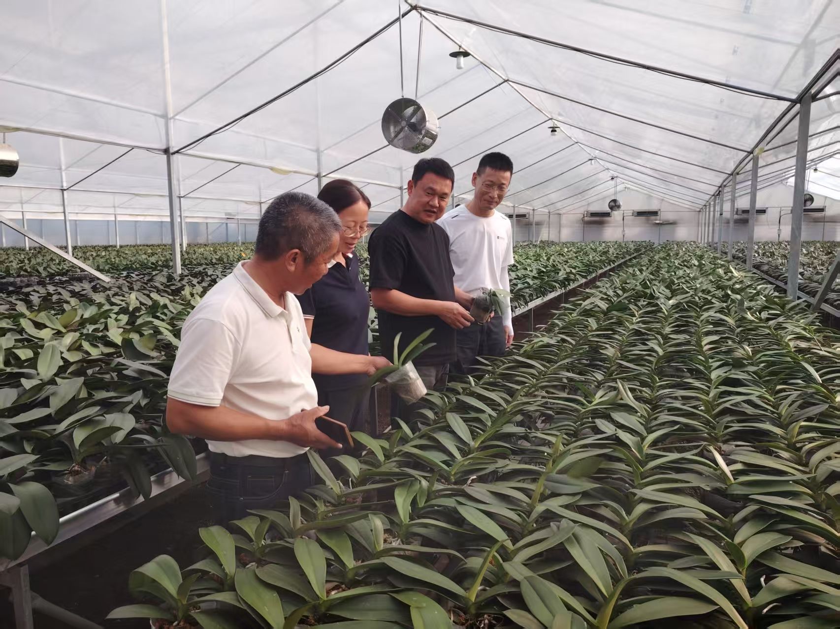 金石镇素有“花卉之乡”的美誉,长期以来以罗汉松盆景为主导产业。近年来,当地积极引进蝴蝶兰等新兴花卉品种,但在种植过程中遇到了技术瓶颈。为此,专家团队在花卉协会会长翁勇金的陪同下,深入多个种植基地调研,系统梳理了当地花农遇到的技术难题,并以此为基础策划了本次针对性强的培训内容。