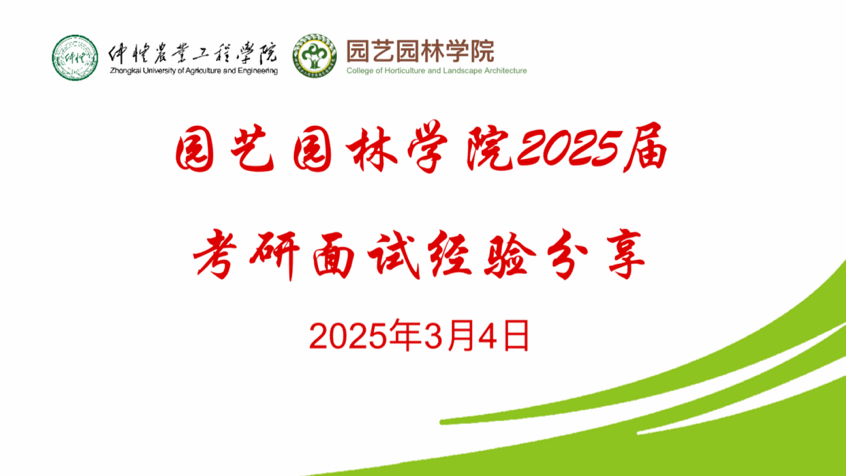 为帮助考研学子更好地备战复试,提升备考信心和技巧,3 月 4日,园艺园林学院举办 “助力研途,决胜复试” 考研复试经验分享交流会,交流会由辅导员黄慧娟主持。活动特别邀请了林涛、杨坤清、吴冰哲、伍泳媚四位在考研复试中表现优异的师兄师姐,为即将参加复试的同学提供宝贵的经验。