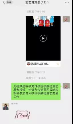 为保障学校师生的健康安全,根据《广州市新型冠状病毒肺炎疫情防控指挥部关于新冠肺炎疫情分级分类防控工作的通告(第13号)》《广州市新型冠状病毒肺炎疫情防控指挥部关于进一步加强新冠肺炎疫情分级分类防控工作的通告(第16号)》,结合防控工作实际,6月4日晚上,我校白云校区决定全面开展全员核酸检测工作,williamhill英国积极号召组织全体在校学生,园艺学生党支部和草业科学学生党支部党员们立即开展结对共建志愿服务,主动成立临时志愿先锋队,个个冲锋在前,勇挑重担,勇争先锋!