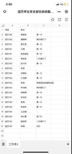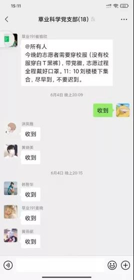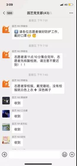 6月4日下午6点收到全面核酸检测的通知,群里便挤满了“收到”“我可以”的信息,“老师,核酸检测还需要志愿者吗?”成了手机里最多的一句话。各支部支委自行联系,分工明确,草业科学学生党支部负责写策划,准备各年级各班级点名册,为各志愿者们安排详细的工作内容。园艺学生党支部负责写班级名称,裁剪KT板,方便各班级同学有序快速的集合,清点人数。党员们晚上10点准时集合完毕,集中分发志愿材料,并叮嘱注意事项,做好个人防护。