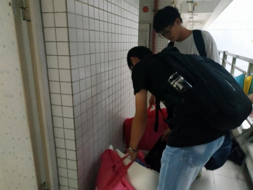 在搬迁宿舍的过程中,学生党员们都手提打包小件的,即使满汗淋漓也继续马不停蹄,天气在学生党员不断赶路的过程中瞬息万变,乌云密布。等到党员们以及需要搬迁宿舍学生到达2栋所安排宿舍时,倾盆大雨。于是,学生党员便一起为搬迁的学生一起打扫卫生。