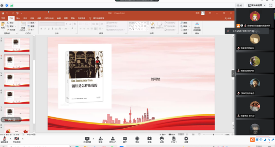 此次的红色经典读后感分享会,园林学生党支部的学生党员们认真学习了有关《钢铁是怎样炼成的》的内容,了解了书本中保尔的人物性格以及顽强不息的精神,并明确认识到作为新时代青年,应具有像保尔这个主人公的钢铁般的意志,在生活和学习中不畏困难,勇往直前。