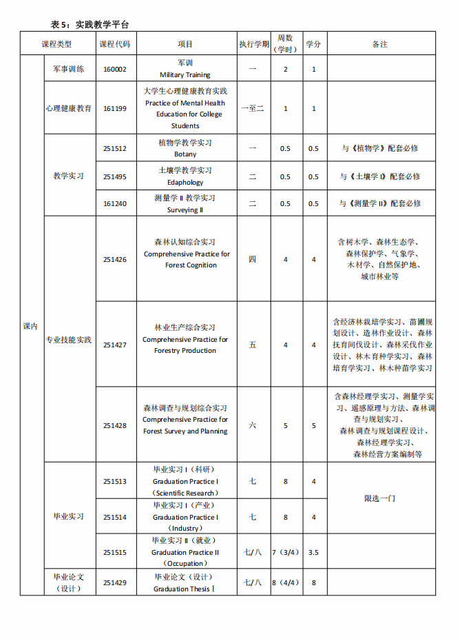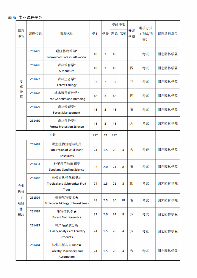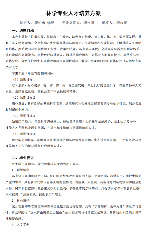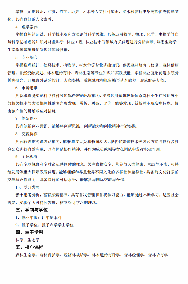 林学专业人才培养方案